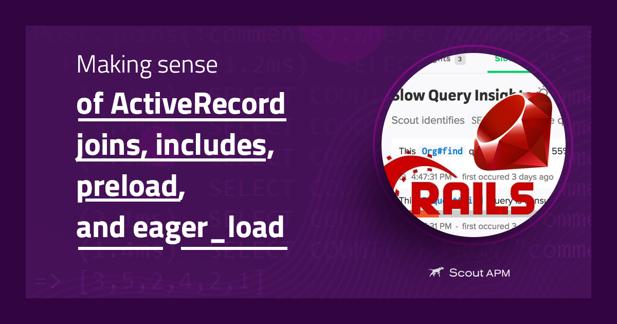 Like a pair of jumper cables, ActiveRecord's joins, includes, preload, and eager_load methods are incredibly useful, but also very dangerous when used incorrectly. Knowing when and where to use each approach - and even when to combine them - can save you considerable trouble as your rails app grows.